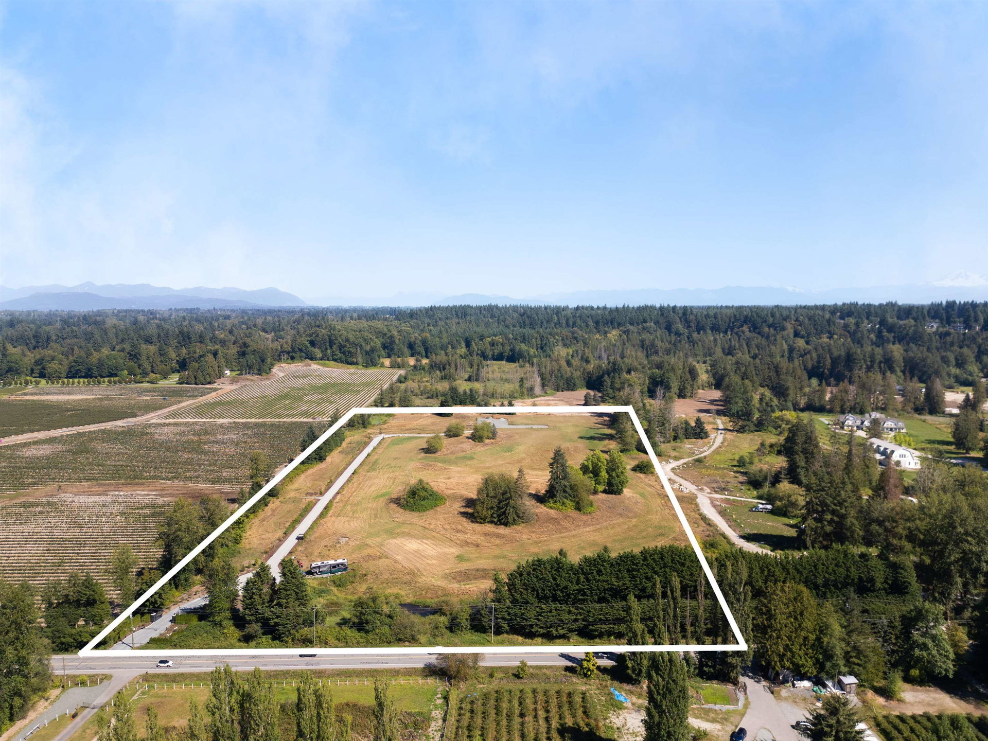 20 ACRES-SALMON RIVER / TALL TIMBERS- Enter through wrought iron gates flanked by majestic marble pillars down the finished driveway to a prepared building site ready for your home, equestrian facility and any other needs you have.The property is all usable, landscaped areas with ornamental trees and shrubs and watering systems in place.Beautiful, original to the property, small knolls, grass fields and small water feature make for a beautiful backdrop for your plans and to take in the gorgeous view of the mountains.Services include 2 drilled wells (one in 2023), Septic, and power.Located 5 minutes to #1Fwy, 8 minutes to Langley shopping and restaurants, 10 minutes to Fort Langley.Zoned RU-10.Bring your Offers.